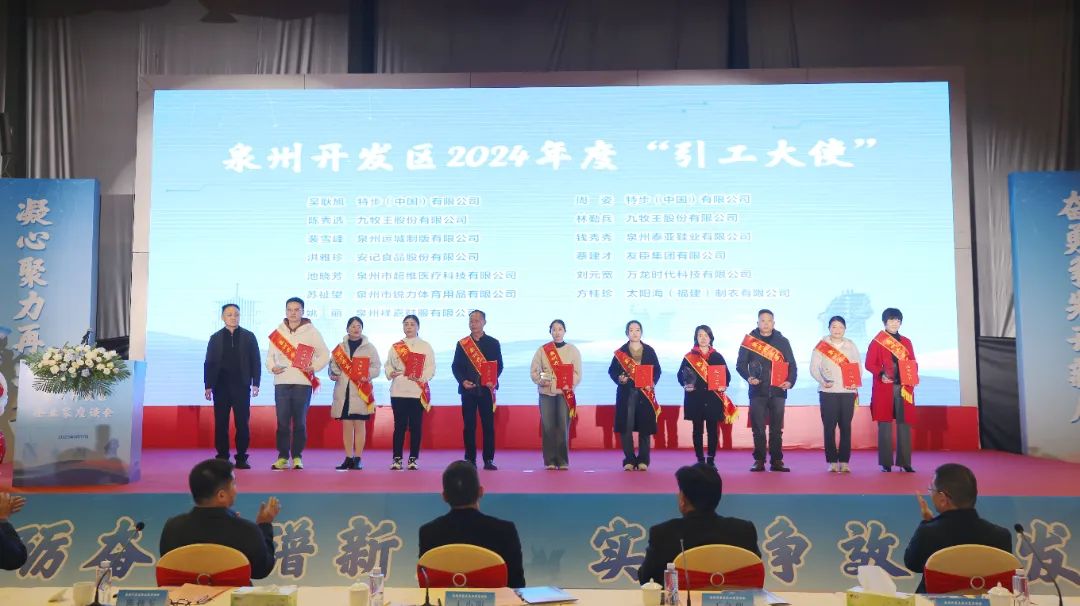 活动现场,区领导和商会会长还分别上台,为2024年度税收贡献先进企业颁发奖牌,为泉州开发区第三批招商引才顾问颁发聘书以及为2024年度“引工大使”颁发荣誉证书。此次活动还着重推介了泉州开发区上海科创孵化园。(供稿人:邱素珍)