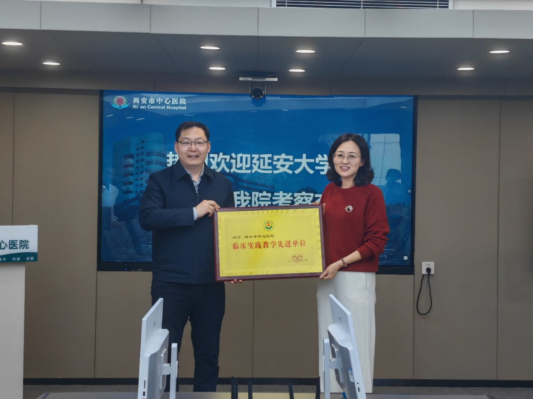 座谈会上,杨彦玲院长为西安市中心医院颁发了2024年度“临床实践教学先进单位”荣誉牌匾,并与延安大学延安医学院的专硕研究生、实习见习生进行了亲切交流。此次交流活动不仅加深了延安大学延安医学院与西安市中心医院的友谊,更为双方未来的深入合作奠定了坚实基础。双方均表示,将在医学教育、科研合作等领域持续开展深入交流,共同推动医疗卫生事业的发展,为培养更多优秀医学人才贡献力量。(西安市中心医院供稿)