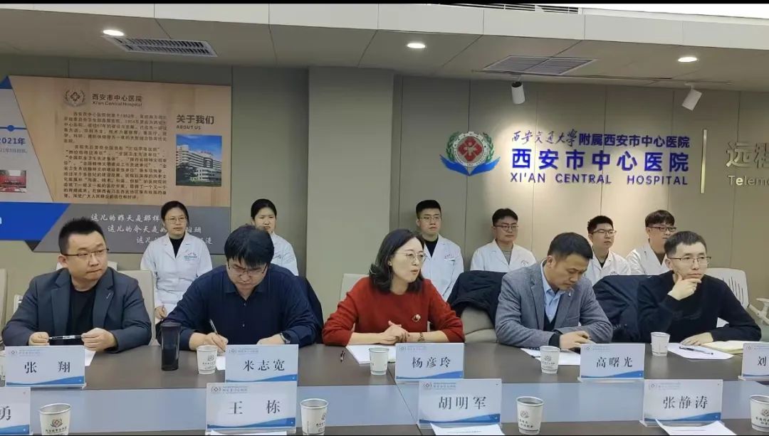 为进一步深化科研与教学领域的互动合作,共同推动教学质量与科研水平迈向新高度,1月21日,延安大学延安医学院院长杨彦玲、党委副书记高曙光、副院长米志宽、学科办主任刘晓龙、研究生办主任张翔一行五人,专程莅临西安市中心医院开展考察交流活动。西安市中心医院院长胡明军、党委书记王栋、副院长张静涛、医务科副科长张勇、人事科副科长柏超以及科教科相关人员热情参会,共同开启这场意义非凡的交流之旅。