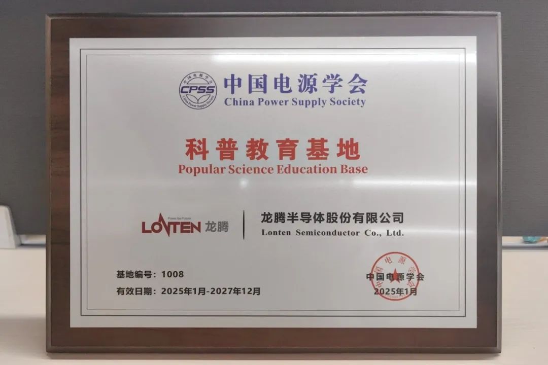 龙腾半导体获评首批“中国电源学会科普教育基地”