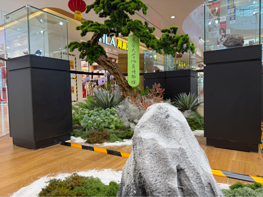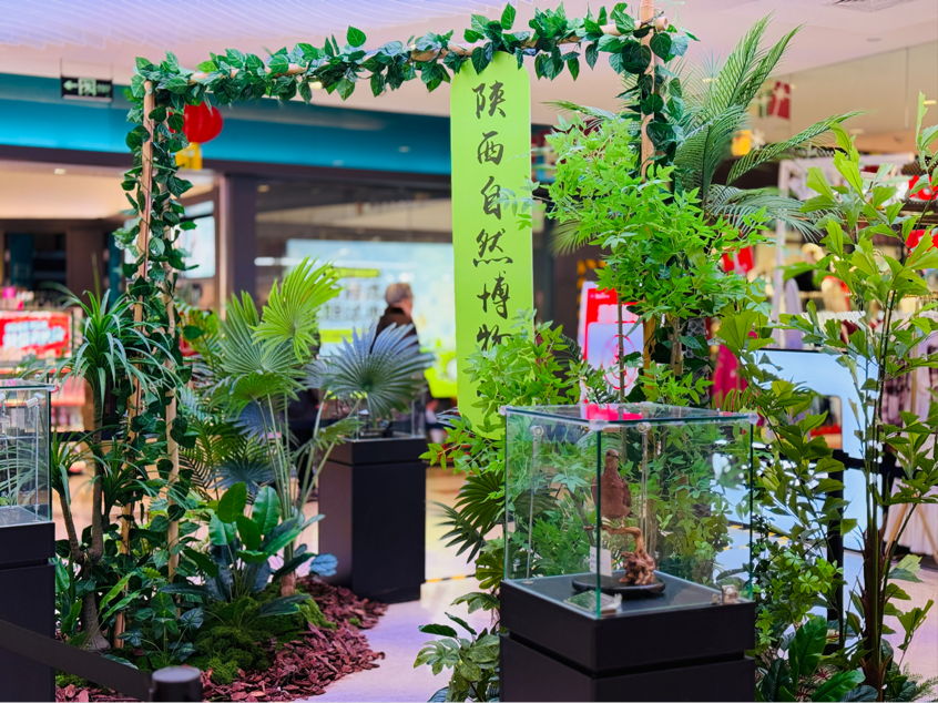 在商场的一层,各个展览极具特色。其中陕西自然博物馆带来的蓝喉太阳鸟、翠鸟、灰背伯劳等十余件鸟类标本,不仅展示了鸟类的美丽与多样性,还让观众了解鸟类自然科学知识和文化内涵,增强“人与自然和谐共生”的生态文明意识;走进长安大学地质博物馆展区,映入眼帘的是萤石、玛瑙、蓝铜矿石、雌黄、雄黄等各种珍稀地质矿石标本,为公众提供更多了解地球、欣赏自然之美的机会,还承载着地球亿万年的沧桑变幻和地质演化的历史信息;西安市新梦想影业博物馆展区汇聚了数十台珍贵的电影放映机藏品,通过实物展示,让群众近距离感受了电影工业从萌芽到发展、再到辉煌的非凡历程;步入西安美院美术博物馆展区,仿佛踏入了一条艺术的时光隧道,明清古画宛如历史的使者,静静诉说着往昔的繁华与沧桑,名师作品则如璀璨星辰,在传统与现代的交织中闪耀着独特的光芒,让观者产生身临其境之感。