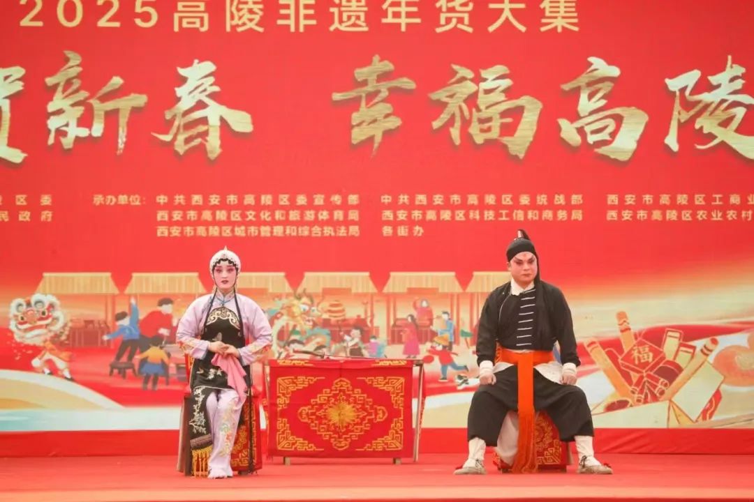 近日,随着西安市高陵区“非遗贺新春·幸福高陵年”2025高陵非遗年货大集的热闹开市,“大秦正声·唱响高陵”秦腔展演也同步在昭慧广场拉开帷幕,吸引了当地和周边上万名群众共同奔赴这场家门口高水准、接地气的戏曲盛宴和非遗文化大餐,勾勒出一幅淳朴生动、热闹纷呈的新春“年画”。