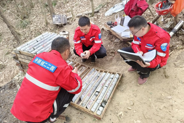隆冬寒愈劲,钻进意志坚。中陕核二二四队地质调查院旬阳县李家院子一带金红石矿普查项目钻探施工现场,技术人员正争分夺秒地开展钻探编录工作。他们身处险峻陡坡面开辟的狭小施工平台上,一边跟踪督导钻探施工安全、质量与进度,一边小心翼翼地排列整理岩芯,认真地进行岩芯观察与编录,仿佛在解读大地深处的密码。每一个数据的记录,都倾注着他们对工作的严谨和专注。在采集劈心样时,队员们的双手被冻得僵硬,工具在手中也变得不听使唤,但他们凭借着丰富的经验和顽强的毅力,精准地切割好每一块样品,仔细编码并记录下其特征。刚参加工作不久的杨哲,是李家院子项目组的一员,他说:“这是我第一次在冬天参与野外地质勘查工作,山上真的特别冷,但也让我学到了很多书本上学不到的知识。前辈们特别照顾我,耐心教我专业技能,传授工作经验,就像老一辈地质工作者常说的‘纸上得来终觉浅,绝知此事要躬行’,我很珍惜工作中的实践实操机会,希望能为项目出一份力。”