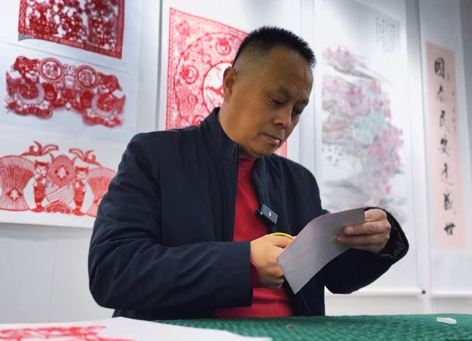 此时,30公里外的玉华剪纸非遗传承人韩保健正忙着创作一幅“盘蛇迎新年”的作品。他手持剪刀,在红纸上轻盈地舞动,细腻的线条如流水般自然流畅,不一会一条盘蛇跃然纸上。剪纸这一中国最古老的民间艺术之一,距今已有1500多年的历史,它承载着丰富的历史文化内涵,反映了中华民族的社会生活、民俗信仰、审美情趣和价值观念。