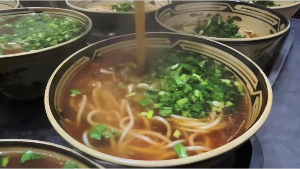 彼时,8公里之外陈炉镇上的向阳饭店,区级非遗陈炉古镇酸汤饸饹传承人郭向阳正在厨房里忙活。他熟练地从锅里舀起一勺用陈炉自酿粮食醋加各种大料熬制成的酸汤,浇在白面饸饹上,撒一把韭菜、搁一点猪油,一碗酸汤饸饹就做好了。顾客吃上一口,嘴里连说:“汤煎面稀猪油汪,酸汤饸饹真好吃!”