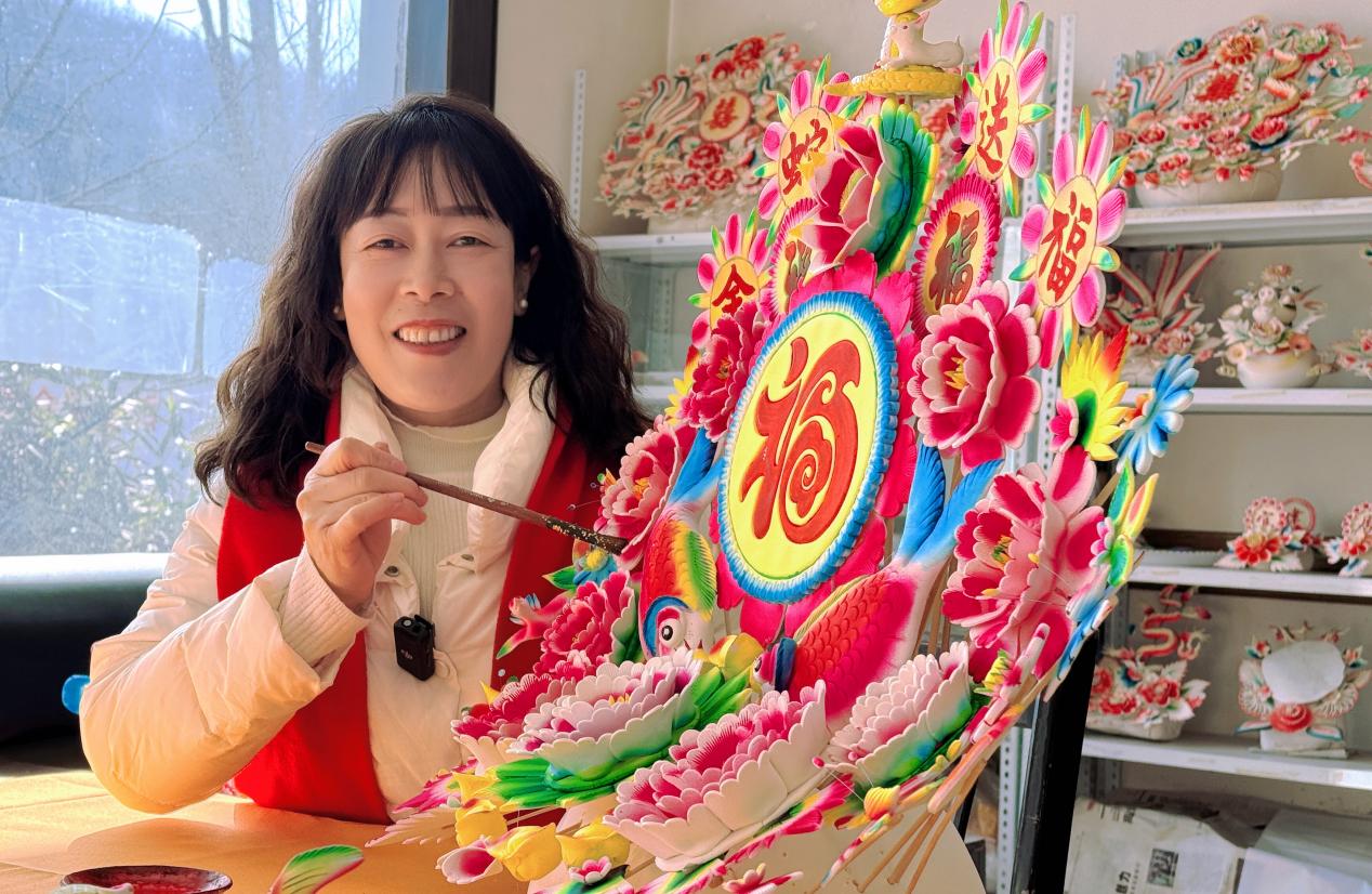 阿庄面花非遗传承人田芳梅正在为面花上色