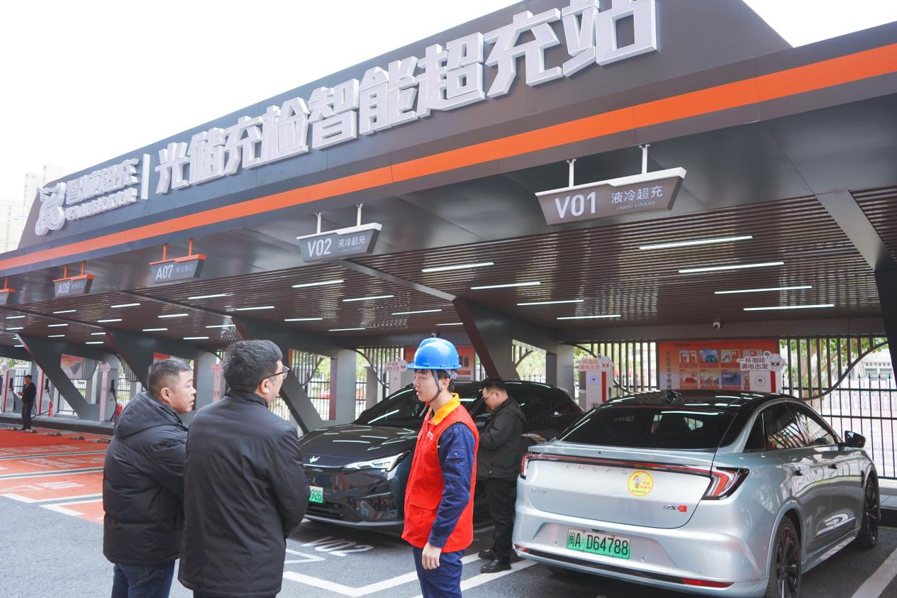 此外,该超充站不仅可以对符合快充技术指标的新能源汽车进行快速充电,还能对充电的车辆电池进行“体检”。用户只需将车辆停靠在指定充电车位,插入充电枪,即可对车辆电池进行健康检测,及时发现并预警潜在异常,全方位保障电动汽车充电与出行安全。