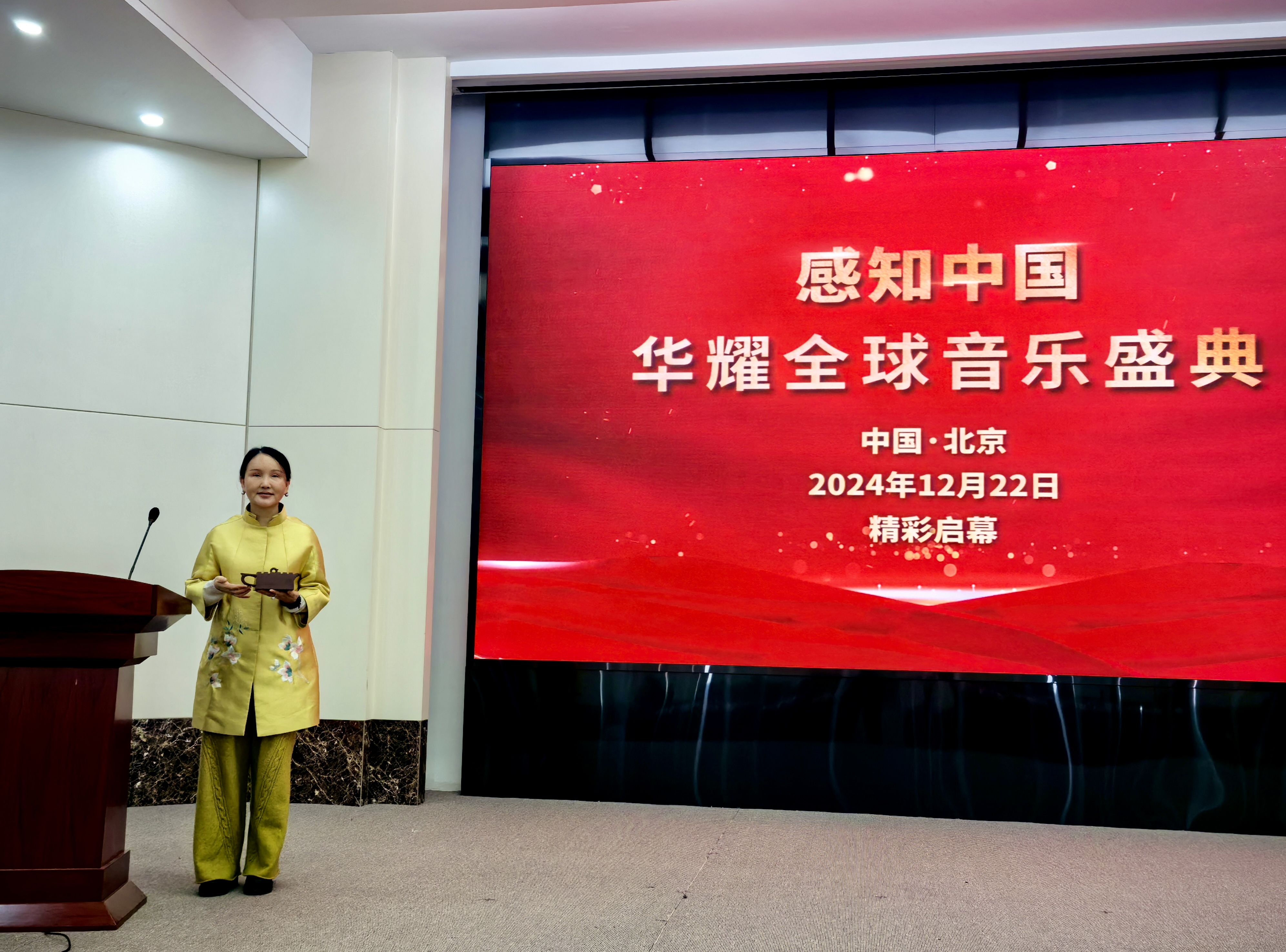 在“感知中国·华耀全球音乐盛典”启动仪式暨新闻发布会上,中国商业史学会常务理事、国家工艺美术师、陕西文物保护专修学院客座教授、紫泥春华博物馆馆长耿春华应邀出席大会,分享紫泥春华博物馆致力于传承创新紫砂制作技艺非遗、开发中国文化交流“使者”主题艺术品的实践经验,并在会上展示了“紫砂长城壶”、“紫砂长城砖”文化艺术品,与会领导专家给予高度评价。
