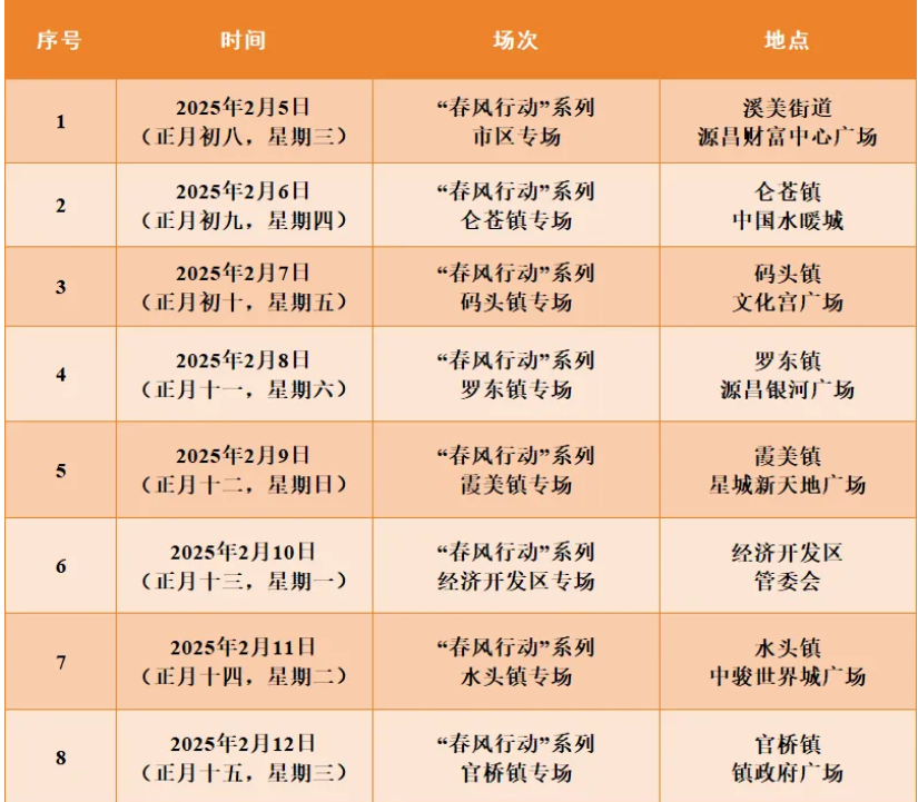 从2月5日至2月12日,南安市退役军人事务局将通过覆盖市区及多个乡镇的8场专场招聘会,为退役军人的就业创业提供热情周到服务。