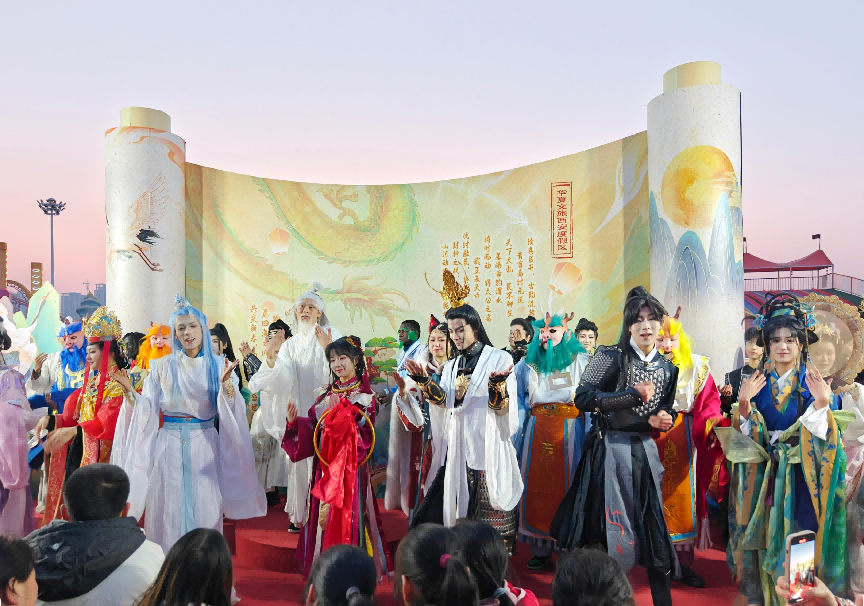 此外,西安千古情景区开展了六面变脸、木偶戏、华阴老腔、火壶、火棍等一系列非遗节目,将三秦大地的故事娓娓道来,让浓浓年味跨越山海。