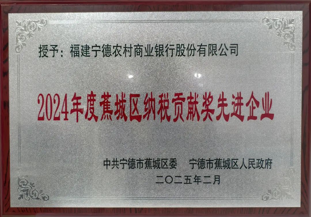 宁德农商银行荣获“2024年度蕉城区纳税贡献奖先进企业”称号