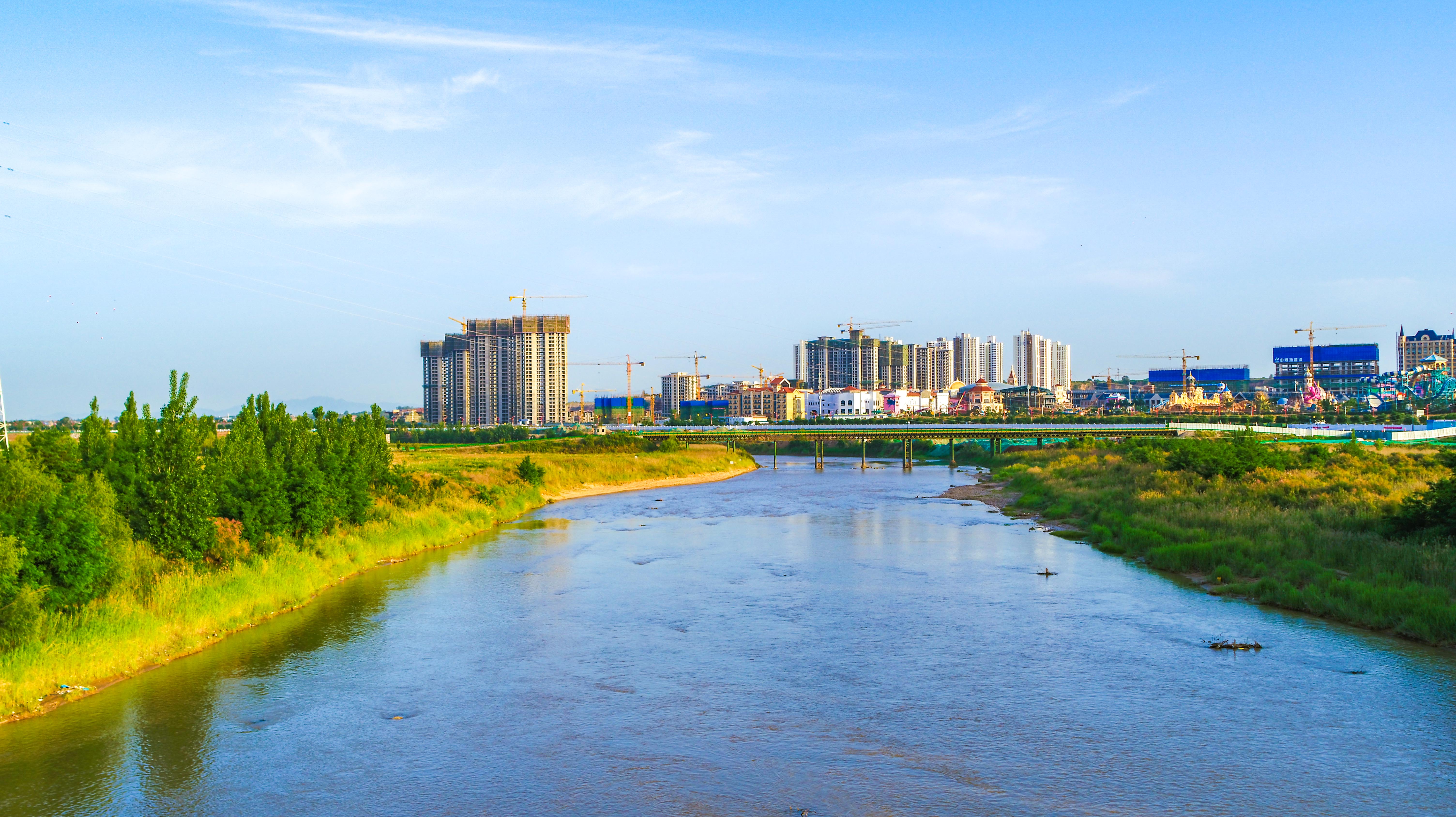 天朗气清,惠风和畅,抬头仰望,沁人心脾的“泾河蓝”如同洗净的绸缎,铺展在西咸新区泾河新城的上空。