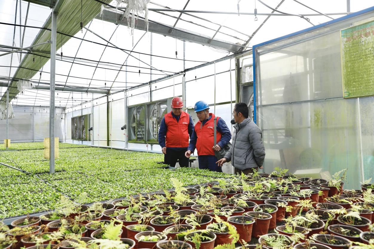 2月11日,在上杭县白砂林场的保障性苗圃内,上千亩骨碎补育苗平整排开,一旁的国网上杭县供电公司白砂镇供电所员工龚荣奎、卢昌瑞正在检查温控大棚的用电设备。经过组培、温控育苗、遮阳炼苗等步骤后,骨碎补幼苗将由温室转移至林下,继续茁壮成长。