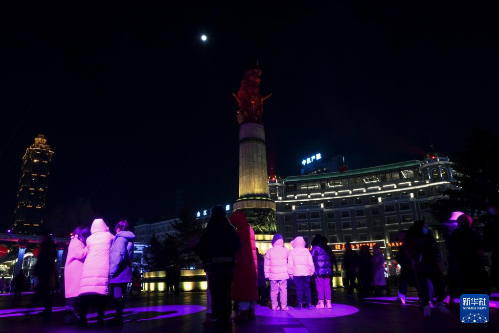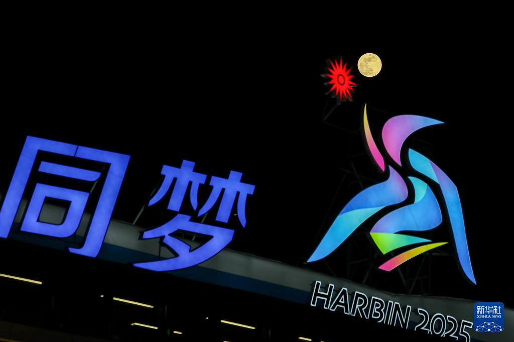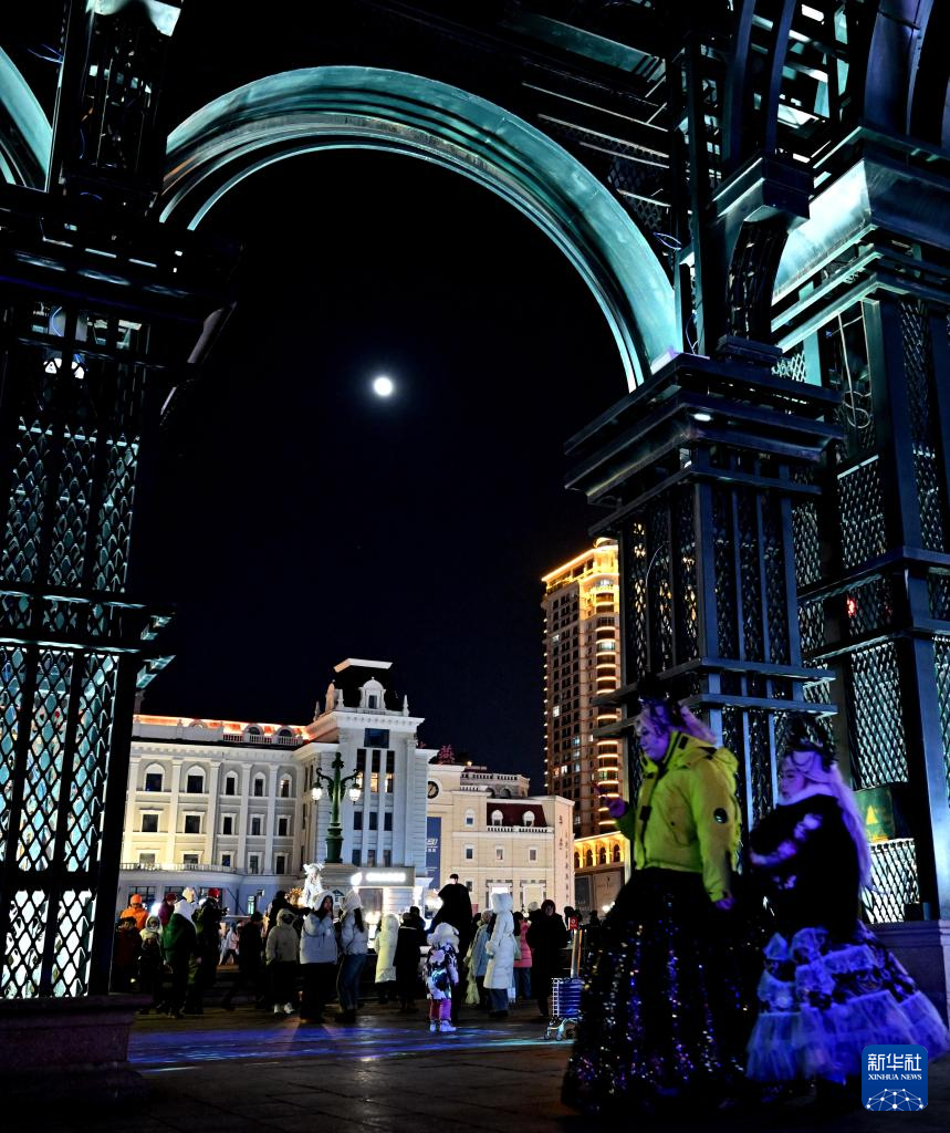 2月12日是元宵佳节,圆月高悬,银辉洒满大地,亚冬之城哈尔滨在此刻熠熠生辉。