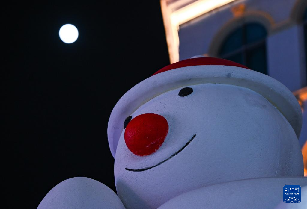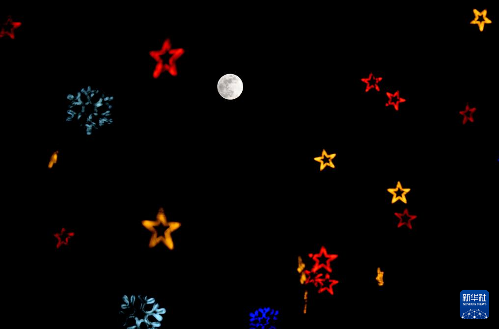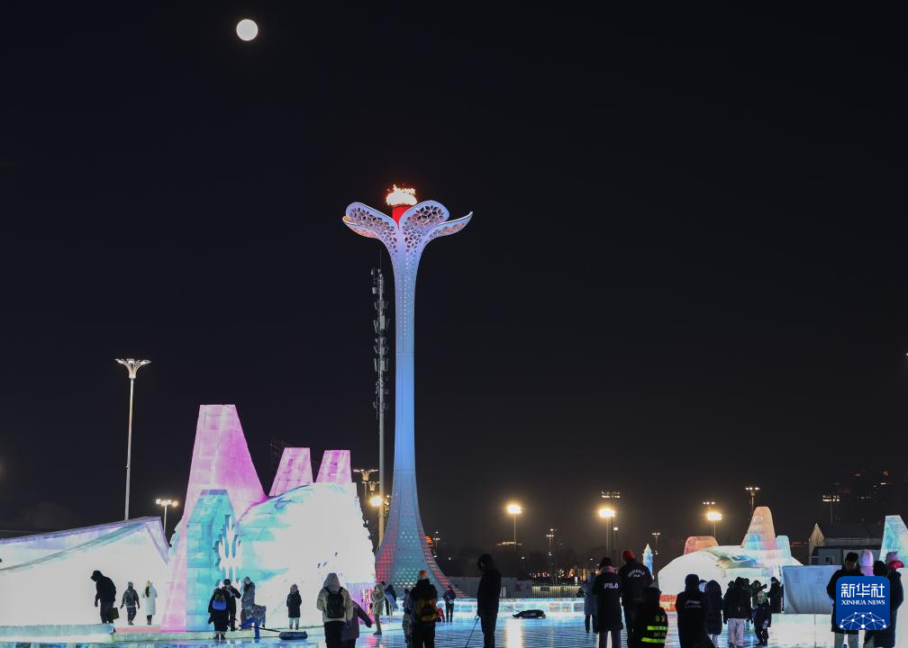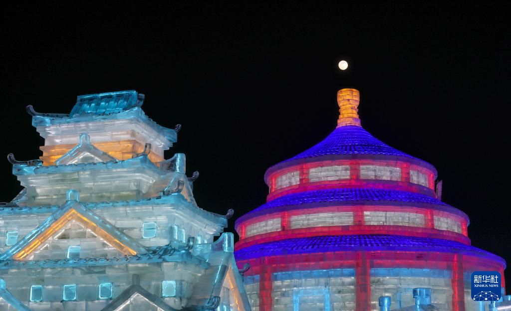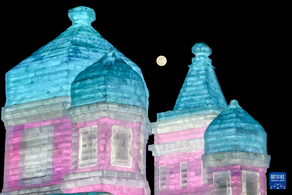 这是2月12日在哈尔滨冰雪大世界拍摄的月亮。新华社记者 黄伟 摄
