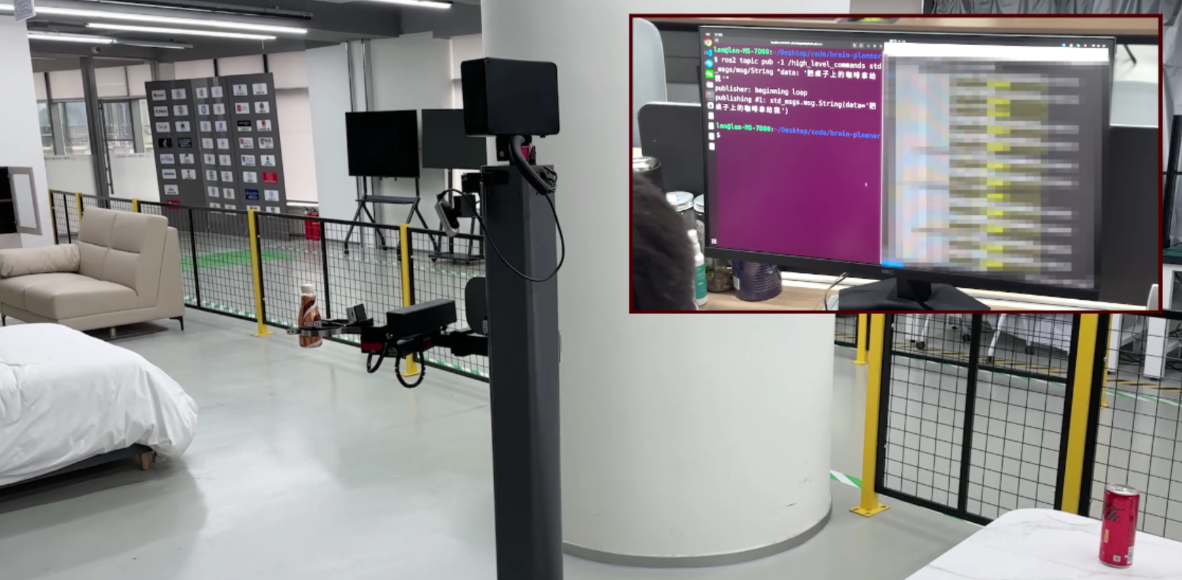 与在单一空间里面完成任务相比,成都人形机器人创新中心通过贡嘎机器人实现长视野(Long Horizon)推理规划和自主学习跨场景任务执行,让机器人的“思考半径”扩大了很多。长视野推理规划可以让人形机器人自主规划行动路径,并在执行任务中实时推理——不仅能识别桌椅、门廊等物体,更能理解“厨房”、“卧室”等空间逻辑,甚至预判移动过程中可能发生的环境变化。这相当于让机器人从“背台词的话剧演员”进化为“即兴发挥的戏剧大师”。