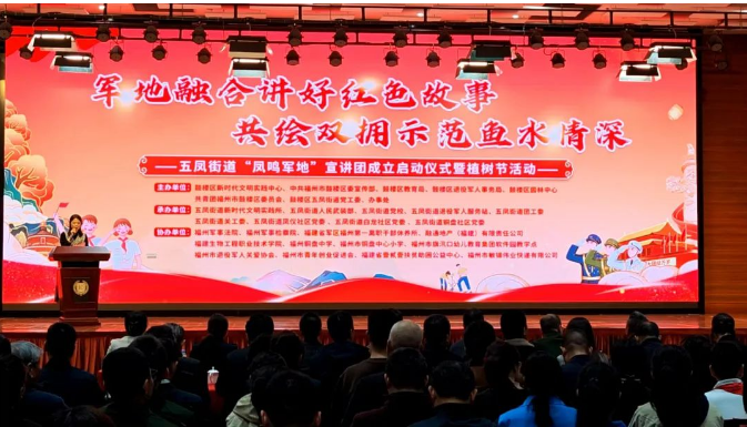 3月11日,福州市鼓楼区五凤街道“凤鸣军地”宣讲团启动仪式在福州市铜盘中心小学举行。活动由鼓楼区新时代文明实践中心、区委宣传部、区教育局、区退役军人事务局、五凤街道党工委、五凤街道办事处等单位主办,旨在通过整合辖区部队、学校、两新组织等11支特色宣讲队,打造军地融合红色宣讲品牌。