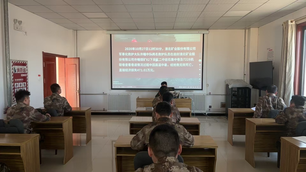 同时,按照班组为单位,集中组织职工观看矿山救护队自身伤亡事故警示教育片,用事故案例为职工敲响安全警钟,扎实做好职工安全管控,为安全生产有序进行打好坚实基础。