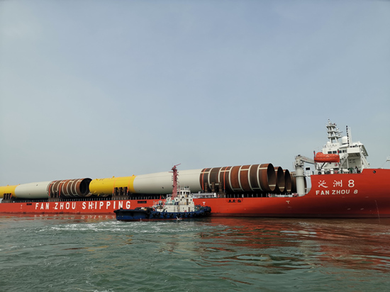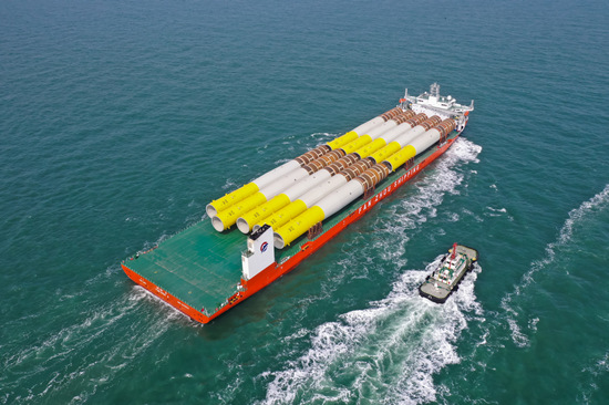 3月15日,装载着10根大型风电单桩的“泛洲8”轮从蓬莱顺利启航,驶往荷兰。这是这艘全球最大载重甲板货船的首次载货营运,烟台海事局全力做好本次出航的服务保障。