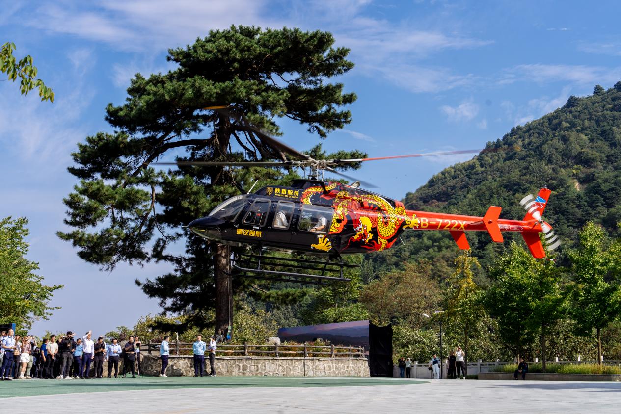 秦汉通航直升机在翠华山景区开展低空飞行演示