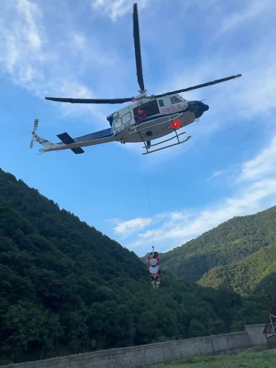 秦汉通航直升机执行索降救援任务