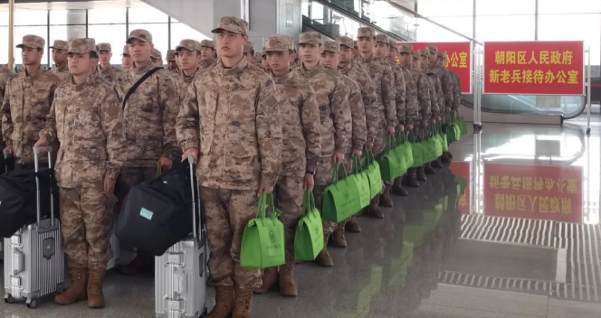 阳春三月,暖风和煦。在这个新旧交替的美好时节,北京朝阳站见证着使命的交接与传承。退伍老兵身姿如松,在历经军营淬炼后愈发坚定从容,满怀荣光踏上归乡之路;入伍新兵朝气蓬勃,眼神中跃动着对军旅生涯的向往,意气风发担起卫国重任。橄榄绿与绶带红交相辉映,让这座现代化交通枢纽激荡着矢志报国的时代强音。