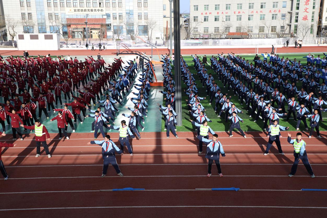 宜君县各中小学全面贯彻落实《中共中央 国务院关于加强青少年体育增强青少年体质的意见》和教育部《切实保证中小学生每天一小时校园体育活动的规定》等文件精神,在县一中,学校全面实施“1+2+4+N”模式,即设置大课间(45分钟)、两操(上下午眼保健操共30分钟)、每周四节体育课(40分钟)、加上课后服务体育兴趣活动等,多途径保证每天校内体育活动总时长不低于2小时,确保学生健康成长。