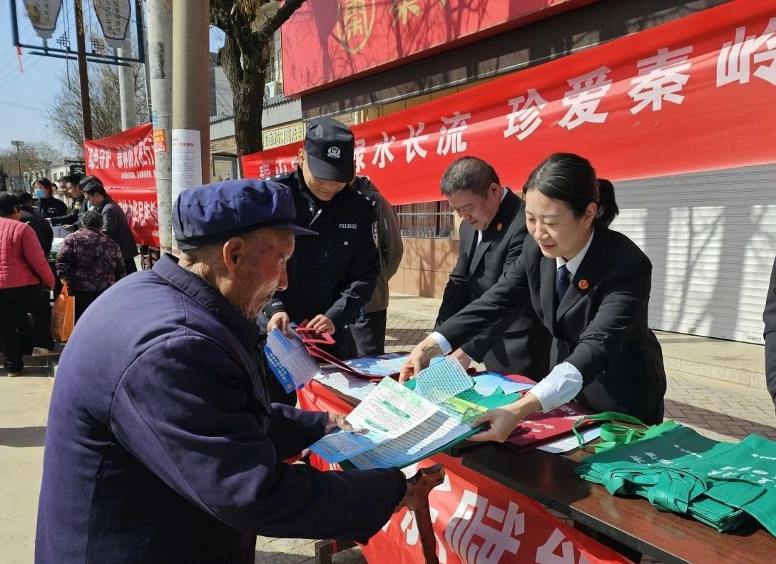 在场干警结合实际,向来往群众认真讲解秦岭保护政策、民法典绿色生态案例等内容,号召群众监督举报破坏生态环境行为,用实际行动守护秦岭“秀美山川”,共同守护好身边的“金山银山”,营造“维护生态、人人有责”的浓厚社会氛围。