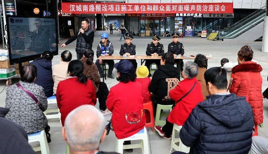 这是针对近期施工扰民问题,工农社区联系治理“合伙人”的西安市生态环境局莲湖分局召开的“汉城南路棚改项目施工单位和群众面对面噪声防治座谈会”的场景。施工方将采取调整作业工序、禁止轰油门、禁止鸣笛、关闭倒车警报及使用节能电车等措施,将噪声影响减到最小。最终在社区和治理“合伙人”的共同努力下,群众接受施工方承诺的一系列整改措施,现场响起了掌声。