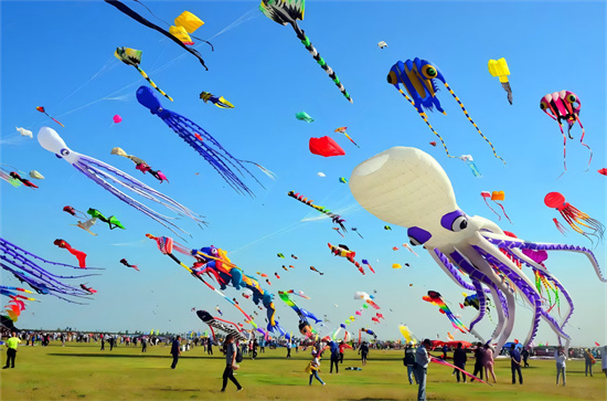 200余只专业风筝将在石老人浴场上演百鸢争奇的“空中剧场”。您将看到30米的龙头蜈蚣风筝,破空而行,20米的章鱼风筝、18米的水母风筝等海洋生物风筝为您带来一场“海洋生物大巡游”。市民游客朋友们可通过文旅崂山公众号线上抢票、参与游戏、市集消费等方式,获取风筝参与市民放飞,让承载着美好祝愿的纸鸢与专业风筝共舞蓝天。