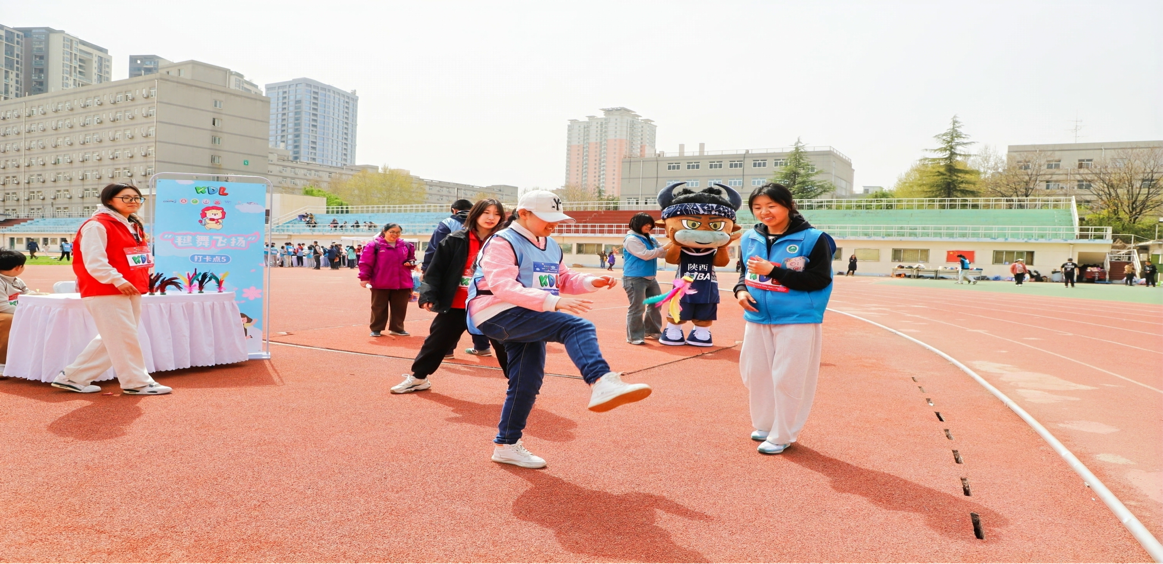 活动现场,一条融合西安传统文化与现代运动元素的1200米趣味赛道成为亮点。参与者通过投壶小游戏、心愿打卡墙、“S弯大作战”等6大互动关卡,在奔跑中感受公益与历史的交融。传统游戏体验区内,投壶、踢毽子等环节让参赛亲子家庭在欢乐中传承文化;而在新兴体育互动区,曲棍球趣味击球、棒球、手球传递接力等新颖项目则吸引了大批青少年驻足体验。传统与新兴体育的碰撞,不仅让孩子们感受到多元运动的魅力,更以趣味化的形式促进孤独症儿童与同伴的协作与交流。集齐打卡印章的参与者还可领取定制奖牌与爱心补给包,为公益之行留下独特印记。