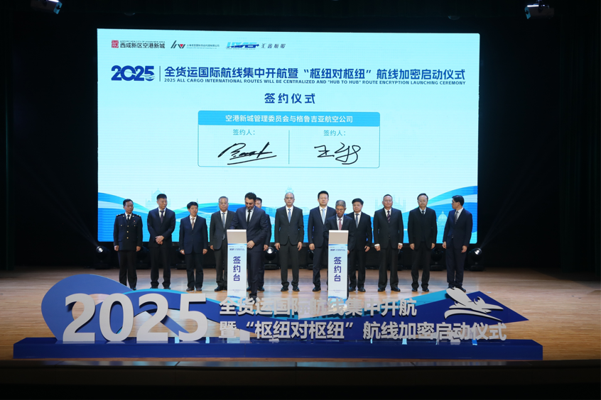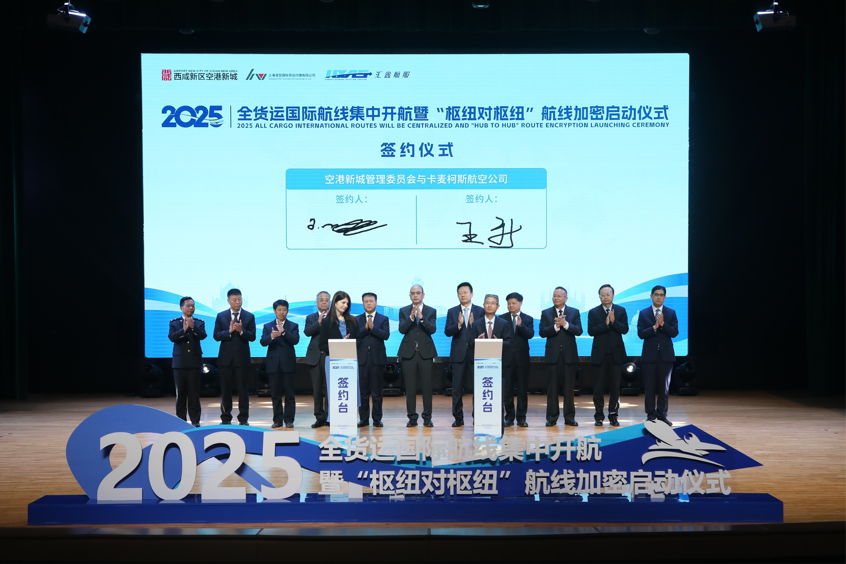 现场,卡麦柯斯航空、格鲁吉亚航空分别与空港新城签订战略合作框架协议,在开通和加密航线的基础上,均将于空港新城设立各自在中国大陆地区唯一常驻代表机构,并利用空港新城航权、保税、口岸、跨境等功能优势,打造自主可控运力体系,织密“空中丝绸之路新起点”航线网络,打造对外开放标志性品牌。