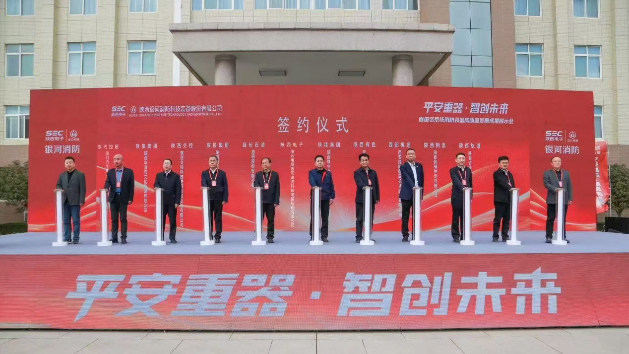 延长石油、陕煤集团、陕汽控股集团代表先后发言,表示将以此次现场会为契机,加强与银河消防公司的战略合作,充分发挥双方优势,为消防装备高质量发展赋能增势。现场会上,延长石油、陕煤集团、陕西交控等十家省属企业子公司与陕西电子凌云电器银河消防公司成功签约,这一战略合作进一步增进了政府部门、企业与消防装备供应商之间的紧密联动,推动各相关企业把握政策机遇,加快消防装备更新换代,全面提升消防应急能力。