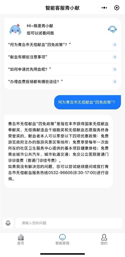 青岛市中心血站“智能客服青小献”小程序重磅上线,开启热血新篇章