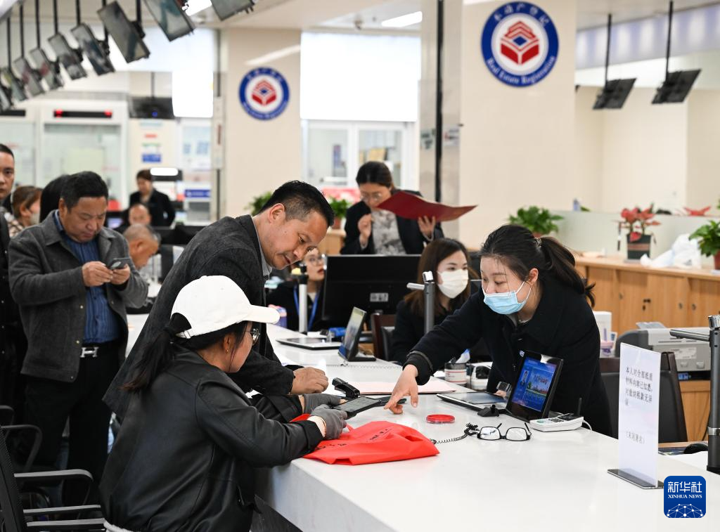 4月14日,市民在淮安市洪泽区政务服务中心不动产集成服务区办理业务。新华社记者 季春鹏 摄
