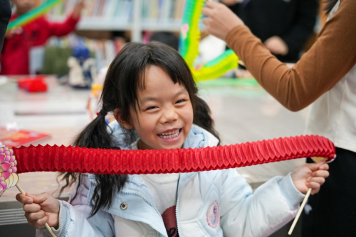 活动当日,社区活动室内热闹非凡。活动老师围绕年兽、中国非遗等知识点,给大家普及,同时通过一场别开生面的“新年知识小抢答”破冰游戏,迅速点燃了现场气氛。孩子们和家长们积极举手抢答,从春节常见的传统食物到节日习俗,一个个问题的解答让大家沉浸在新年文化的趣味之中。现场充满欢声笑语。
