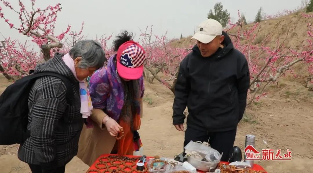 在桃花会的热闹氛围中,秦安县兴国镇杨坪村的果农杨浩平也迎来了他的“春天”。他种植果树四亩多地,主要以桃树为主。在种植桃树之余,杨浩平还利用业余时间,手工采摘野生山桃核,串制成文玩手串,作为自己的副业。