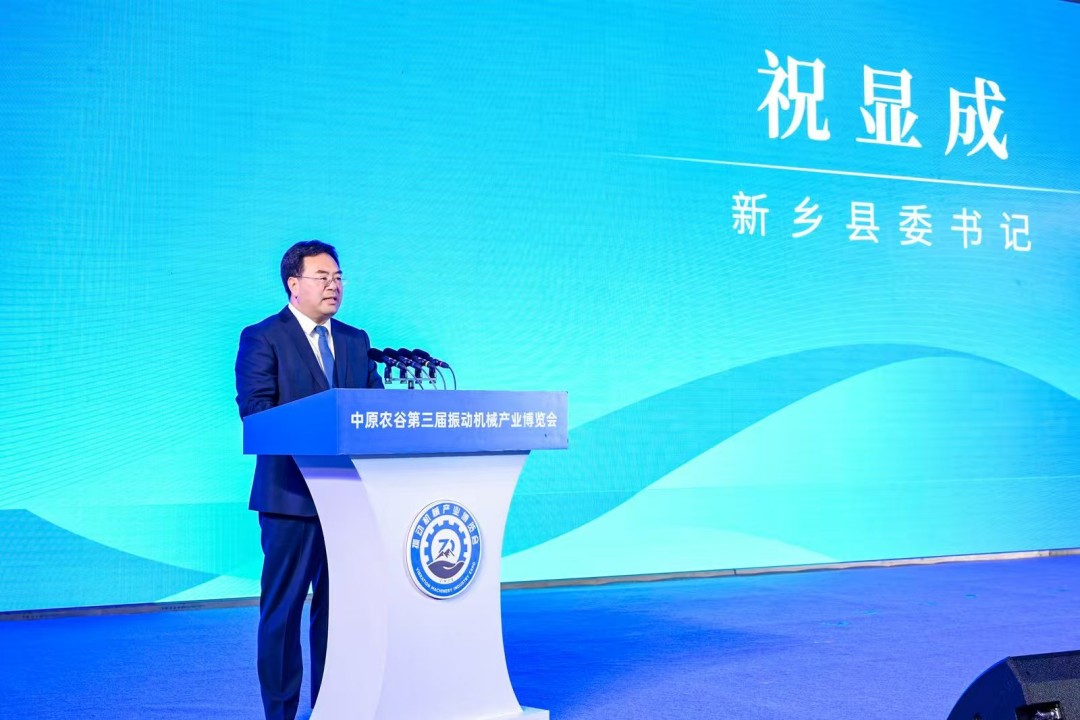 新乡县委书记祝显成在致辞中介绍,近年来,新乡县加快推进特色产业转型提质、集群集聚,“振动之都”品牌效应持续放大,振动产业发展优势不断彰显。新乡县拥有振动设备生产企业338家,配套企业110余家,年产值占全国的近三分之一。产业规模、市场占有率和研发能力均位居全国前列,2024年振动产业成功入选河南省中小企业特色产业集群。全县振动高新技术企业19家,科技型中小企业22家,省级以上专精特新企业8家,省级工程技术研究中心4家,振动企业获得授权专利588项,发明专利208项,有力助推了振动产业向高端化、智能化、绿色化迈进。新乡县统筹推进建标准、提质量、强检测工作,共制定、修订国标13个、行业标准4个、团体标准9个;拥有全省可检测振动机械产品种类最全、项目最多的省级质检中心。新乡振动产业作为全省唯一1家县级产业集群,成功入选全国中小微企业质量管理体系认证提升行动试点。
