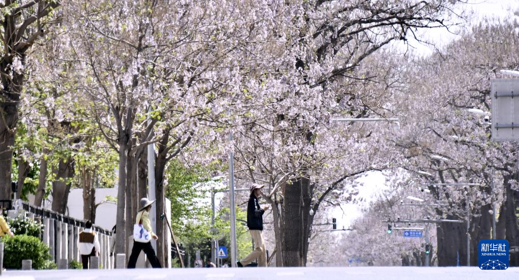4月17日拍摄的泡桐花盛开的宏达路。新华社记者 李欣 摄