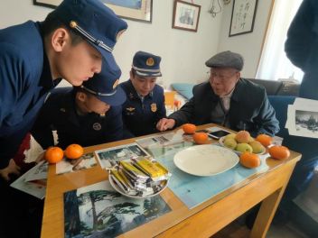 一踏入杨老的家门,消防人员便与这位英雄展开了亲切的交谈。他们细致地询问了杨老的身体状况和家庭生活,深入了解他在生活中可能遇到的困难,并怀着崇敬之情聆听杨老讲述那段波澜壮阔的抗战历史。杨老虽已年过九旬,但依旧精神矍铄,思维清晰,谈及往昔,杨老感慨万千。他回忆了自己年轻时投身抗战的激情岁月,那些与战友并肩作战、生死与共的日子仿佛就在昨天。他讲述了战场上的残酷与艰辛,也分享了胜利的喜悦与荣耀。每一句话、每一个细节都透露出他对国家和民族的深厚情感。消防员们听得如痴如醉,他们被杨老的英雄事迹深深打动,也更加坚定了自己为国为民的初心和使命。