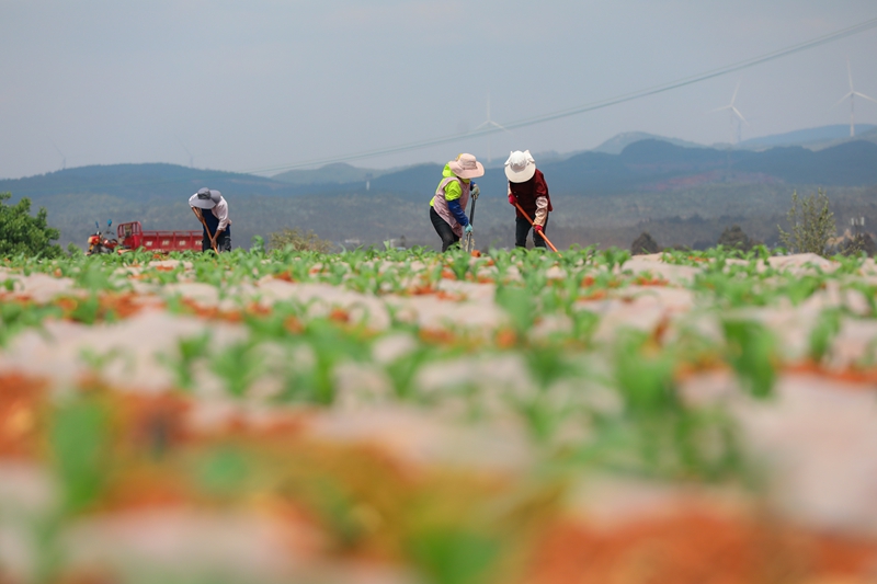 4月20日,农民在云南省曲靖市陆良县芳华镇雍家村播种制种玉米。