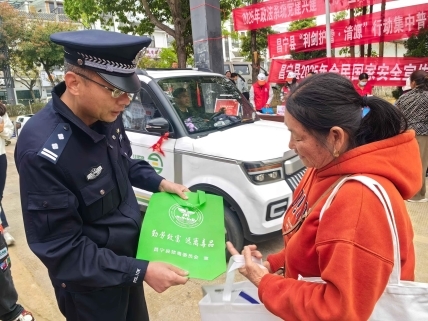 2025年4月15日清晨,在云南省保山市昌宁县田园镇达丙农贸市场人头攒动、熙熙攘攘,有一个“特殊的摊位”吸引了众多前来赶集群众的目光,这是昌宁县公安局禁毒大队民警在这里摆上的"禁毒宣传摊位",民警用禁毒知识为赶集群众送上一份特殊的"健康好礼"。