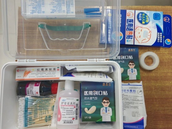 这个小药箱,是该班学生李富哲主动为班级同学们配备的。药箱装着体温计、酒精棉片、碘伏、棉签、创可贴、降温贴、红霉素软膏、炉甘石洗剂等应急医疗物资和基本消炎物资,成为同学们日常健康的“急救站”。