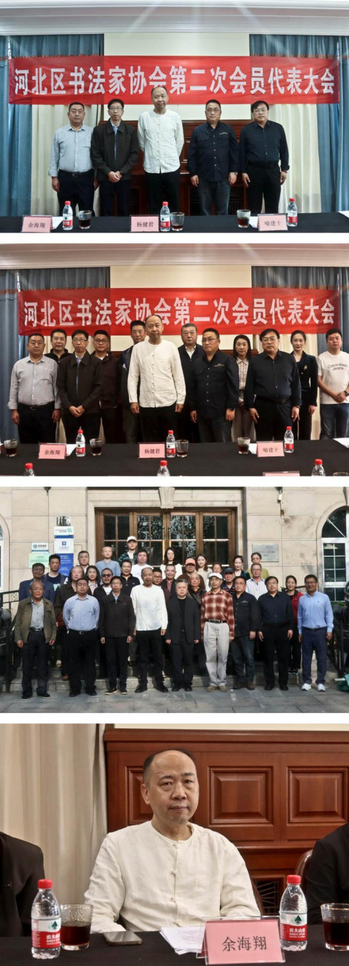2025年4月20日,天津市河北区书法家协会第二次会员代表大会,在上海银行海河支行会议室召开,此次会员代表大会审议并通过了河北区书法家协会上一届理事会工作报告和《河北区书法家协会章程》修改案,以及《河北区书法家协会入会细则》,经选举余海翔当选为河北区书法家协会第二届主席。