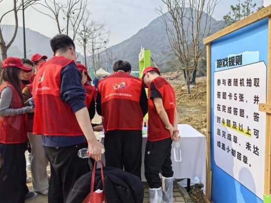植树后,青年志愿者还积极参与现场“绿色知识问答题”,认真回答垃圾分类、节能护水等题目;参加“绿动飞盘分类赛”,将标有不同名称的飞盘精准投掷到对应垃圾分类的指示区域;充分发挥想象力,将落叶变成一幅幅美丽“绿美创意粘贴画”。形式多样的趣味游戏,使参与者进一步加深对绿色低碳、节能环保理念的理解。