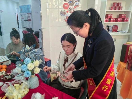除了手工制作,网点还为每一位到场的女性客户准备了精美的礼品和贴心的服务。现场布置得温馨而浪漫,鲜花、气球和温馨的灯光营造出浓厚的节日氛围。工作人员热情接待每一位客户,耐心解答她们的问题,并提供专业的金融咨询和服务。