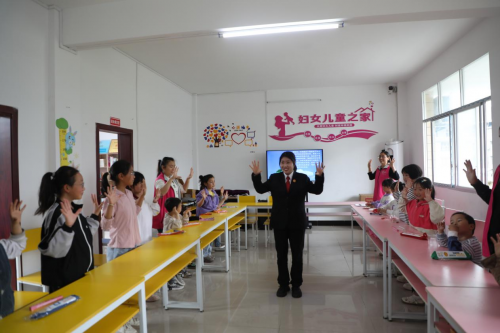 此次普法创新普法模式,干警向瑶以校园普法手势舞开场破冰,用轻快的节奏拉近与孩子们的距离。