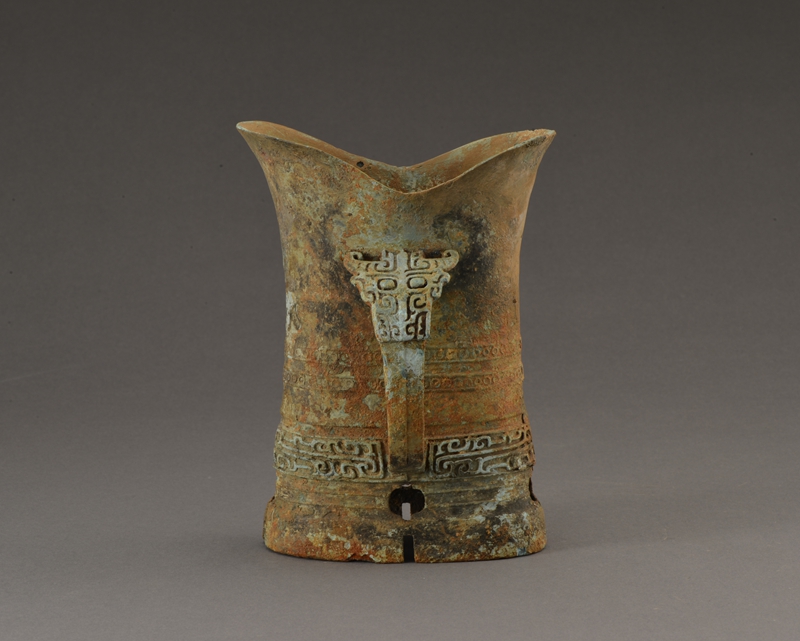 湖北黄陂盘龙城遗址杨家湾M17出土的铜带鋬觚形器(资料照片)。