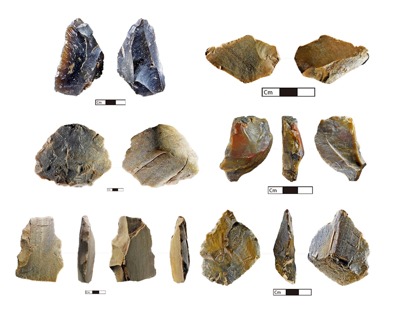 西藏康马玛不错遗址出土的第一期遗物(骨器和石器)。