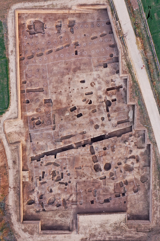 陕西宝鸡周原遗址王家嘴一号建筑遗址(资料照片)。